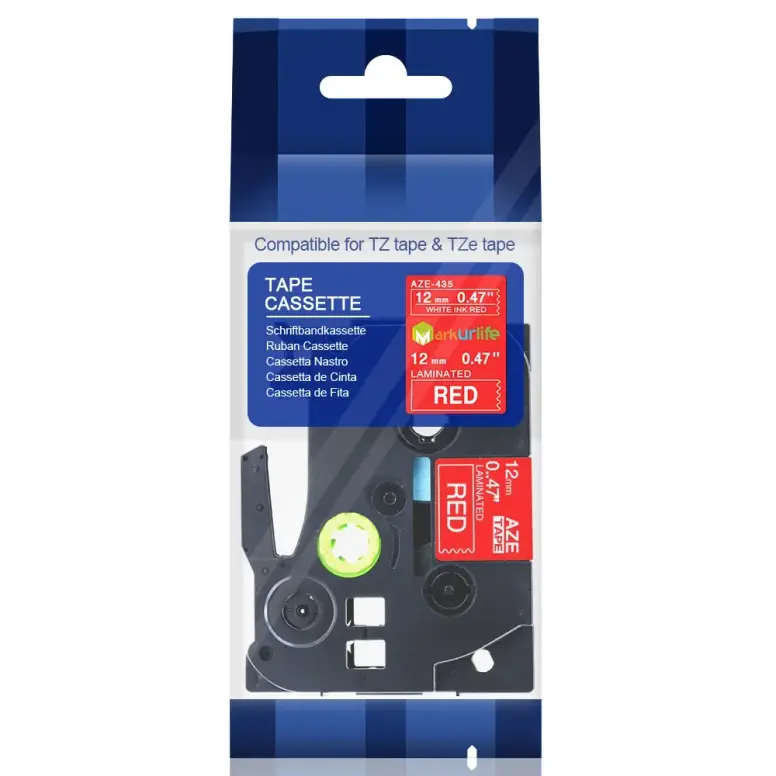 סרט לברדר פיטאצ 12 מ"מ TZ-435 כיתוב לבן רקע אדום