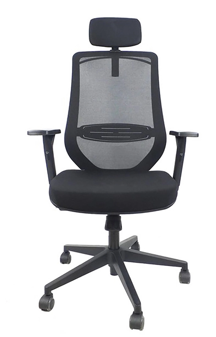כסא מנהל עם משענות ידיים 2D ומנגנון ותמיכה לומברית מתכוונת בגב