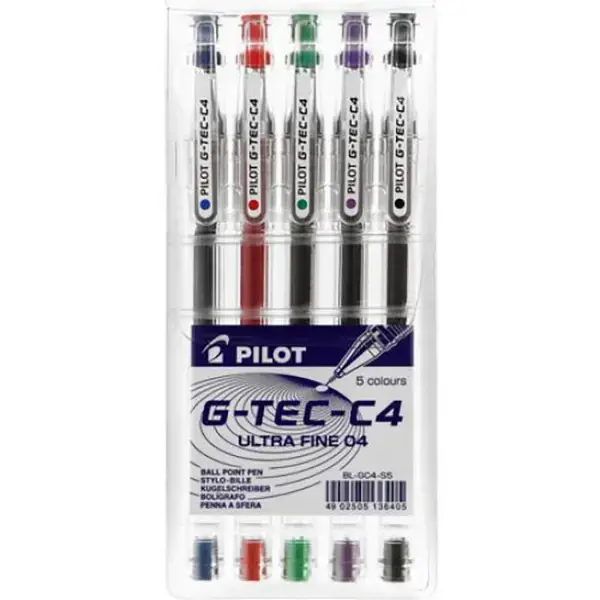 עט פיילוט ג'ל G-TEC-0.4 סט 1/5 צבעוני
